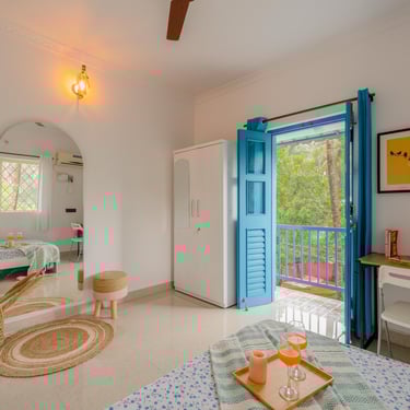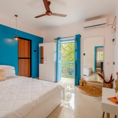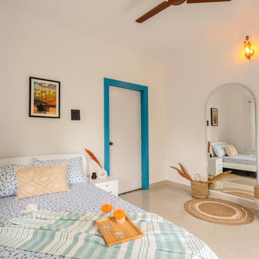 Greece, right here in the heart of Goa! Our enchanting Airbnb combines the charm of the Mediterranean with the tropical beauty of Goa, offering you a unique and unforgettable escape. From the moment you step inside, you'll be transported to the romantic and serene landscapes of Greece. Whitewashed walls, soothing blue accents, and tasteful decor bring the Mediterranean vibes to life.